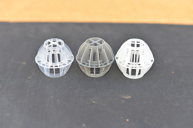 多面空心球中間鏤空結(jié)構(gòu)形成空隙大,不易被阻塞的特性。這種結(jié)構(gòu)在空氣洗滌、廢氣吸收、灰塵過濾等廢氣處理工程方面應(yīng)用,具有處理風(fēng)量大、阻力小的特點。由于多面空心球的空隙中有較高的滯液量,可使塔內(nèi)液體停留時間長,從而增加了氣體與液體的接觸面積和接觸時間。