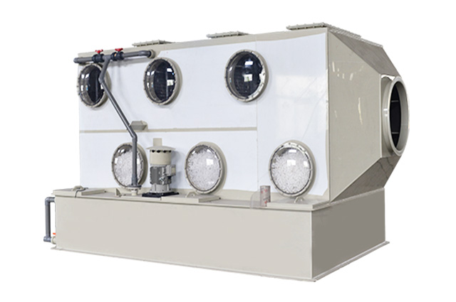 PP臥式噴淋塔也叫臥式交叉流式洗滌塔、PP臥式廢氣處理塔。臥式噴淋塔適用于空間狹小的安裝環(huán)境,多用于室內安裝。可用于處理可溶性氣體、液態(tài)微粒、固粒狀物、臭氧。在工業(yè)用途上可當做冷卻塔、濕潤機,并適用于各種工程制程的廢氣處理。PP臥式噴淋塔的工作原理:有害廢氣由離心通風機壓入或吸入進風段,再流動至填料層,與噴淋液接觸反應。噴淋系統利用清水作為循環(huán)吸收液,循環(huán)水從塔體的上部的布水器噴淋至填料層,潤濕填料表面形成流動的液膜。PP臥式噴淋塔填料層內氣、液兩相呈逆流流動,氣液兩相在塔體內逆流接觸,利用有害氣體在吸收劑中的一定的溶解度,可溶的部分不斷融入吸收液中,達到降解氣體中有害組分含量的目的。可以適當的添加藥劑,有害廢氣不斷被吸收或是被化學反應去除掉,濃度在流動過程中逐漸降低,到PP臥式噴淋塔側部是達到吸收要求排出洗滌塔外。