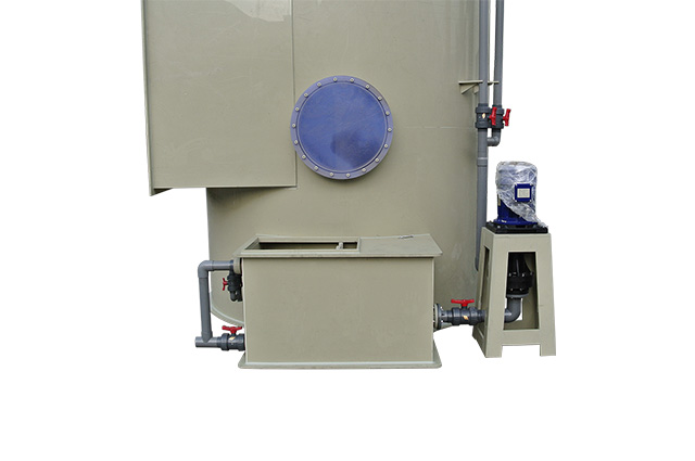 旋流塔是處理粉塵設備,結構與噴淋塔結構同樣,主要是由格柵板填料改變為旋流葉片、噴淋系統。右下往上,分別是:順時針葉片加噴淋系統;旋流塔內設計多套旋流裝置,經過初級凈化的煙氣旋轉上升,由于旋流裝置設計合理,旋流氣動裝置具有導向和接力作用,利用煙氣自身的動能產生氣動旋流,氣液兩相充分接觸,進行傳質反應,逆時針葉片加噴淋系統,起到一個順逆兩相氣體相沖變化,從而使粉塵流入塔底;大小頭除霧層,起到一個不能讓水份跟隨氣體流出排放。